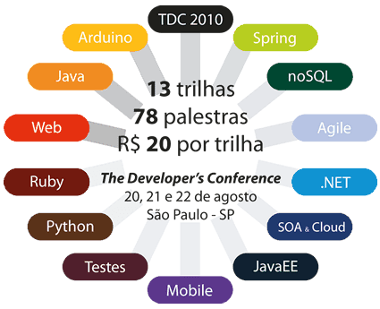 Como muitos já sabem, no próximo final de semana (dias 20, 21 e 22 de agosto) teremos a realização do evento The Developer's Conference 2010 que irá reunir profissionais de desenvolvimento de software de vários segmentos de tecnologia para discutir sobre tendências atuais e futuras.